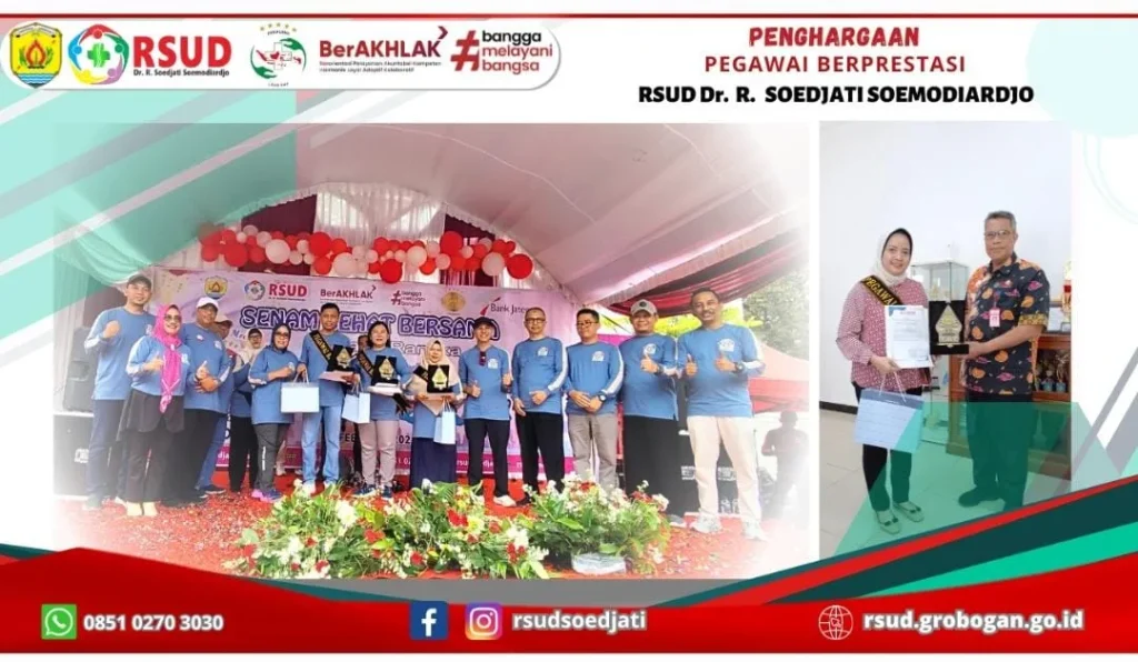 RSUD Dr. R. Soedjati Soemodiardjo Purwodadi menyampaikan ucapan selamat dan apresiasi kepada para pegawai yang terpilih sebagai Pegawai Berprestasi Periode II Tahun 2024. Penghargaan ini diberikan sebagai bentuk pengakuan atas dedikasi, kinerja, dan kontribusi luar biasa dalam memberikan pelayanan terbaik kepada masyarakat serta mendukung pencapaian visi dan misi rumah sakit.